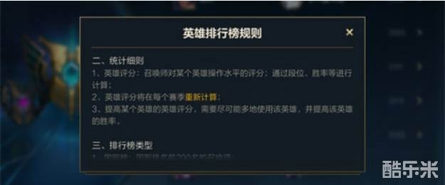 1、根据目前官方的资料,我们可以得知:英雄评分是通过段位、胜率等进行综合计算的;