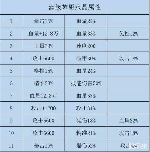 咸鱼之王满级梦魇水晶属性如图所示: