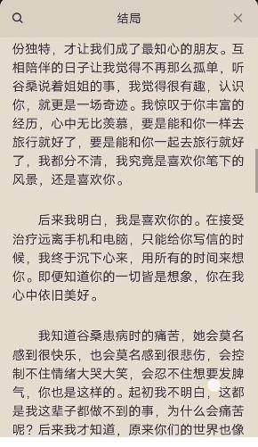 王寻背包中的信件都是空舟寄给她的,通过信件的内容可知,虽然王寻写了西宁和拉萨的景点,但是并没有亲自去看过这些风景,在空舟的建议下,两人决定一起旅行,旅行的终点站由王寻定,旅行的站点由空舟定,旅行结束后,空舟会跟王寻回到王寻的故土。