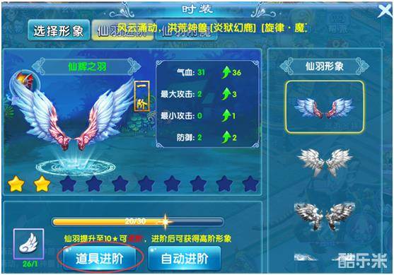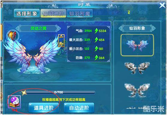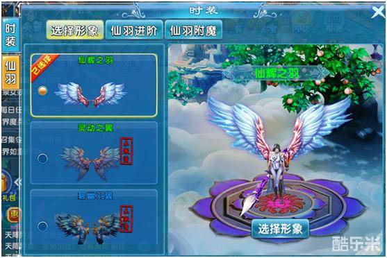 点击时装--翅膀--选择形象就能浏览各阶羽翼了:
