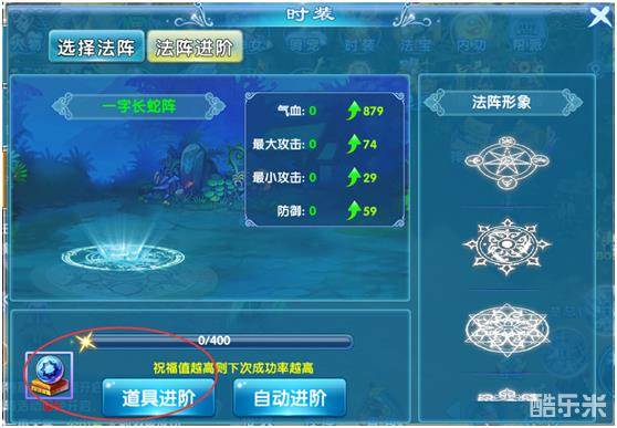 点击 羽翼—翅膀—法阵 就可以查看当前法阵属性,并且对法阵进行升级。