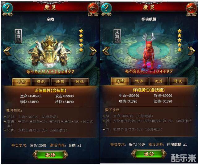 激活魔灵可以为角色增加属性,使战力大大增长,最大可增加战力+104497!提高魔灵达到一定等级后,还可以激活魔灵技能哦!