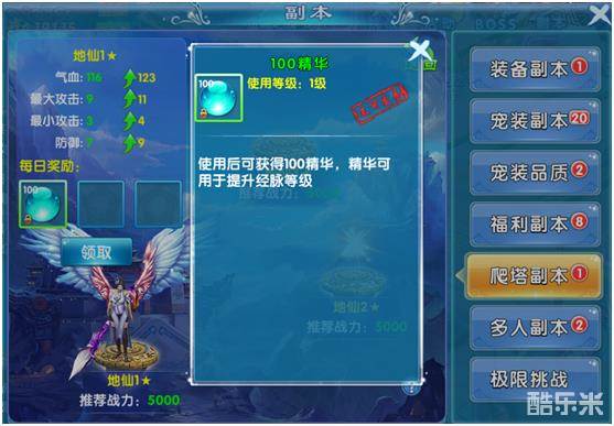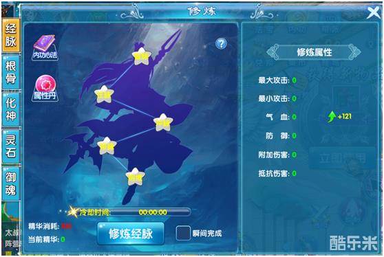 经脉系统通过爬塔副本获得精华,可以用精华来升级经脉,提升自身各项属性。经脉的修炼是循环的,依次提升血气,攻击,防御,附加伤害,抵抗伤害。