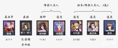 3、白沉香+唐月华+绛珠:这3位魂师在这个阵容的主要作用是拉条,次要作用是增伤,大家可以根据自身的练度和魂师box来进行选择。