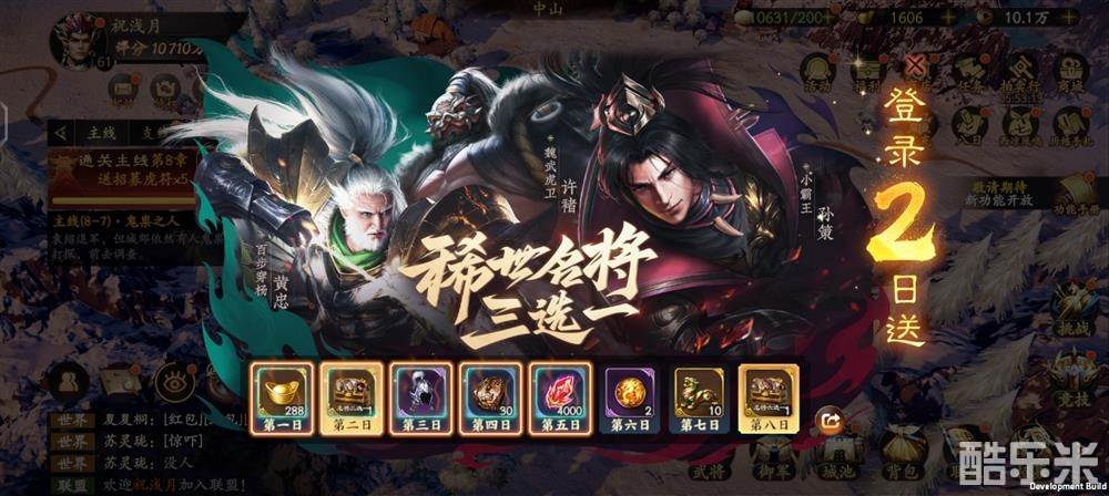 兵马未动,粮草先行,《乱世逐鹿》手游为玩家准备了海量不删档福利活动。每日登录游戏,名将任君挑选,第二天名将3选1,第八天名将6选1。完成每日签到,还可获得大量游戏元宝等丰厚奖励。完成对应的成长任务,直送5星名将马云禄。玩家在体验主线任务及玩法的过程中,还可解锁招募虎符、大量元宝等福利。海量福利活动,尽在5月26日《乱世逐鹿》手游不删档上线后同步开启!