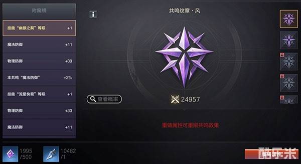开放技能共鸣系统,通过对共鸣纹章的升级,可激活纹章附魔效果,提升属性的同时,甚至可以提供额外的技能强化效果,从而实现更多的技能策略搭配;