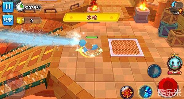 招牌水枪射击,对扇形区域敌人造成物理伤害,附加减速效果