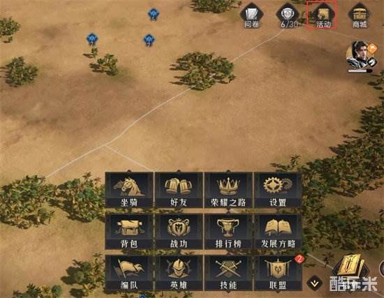 1、进入游戏在主界面点击右上角的【活动】进入游戏活动中心;