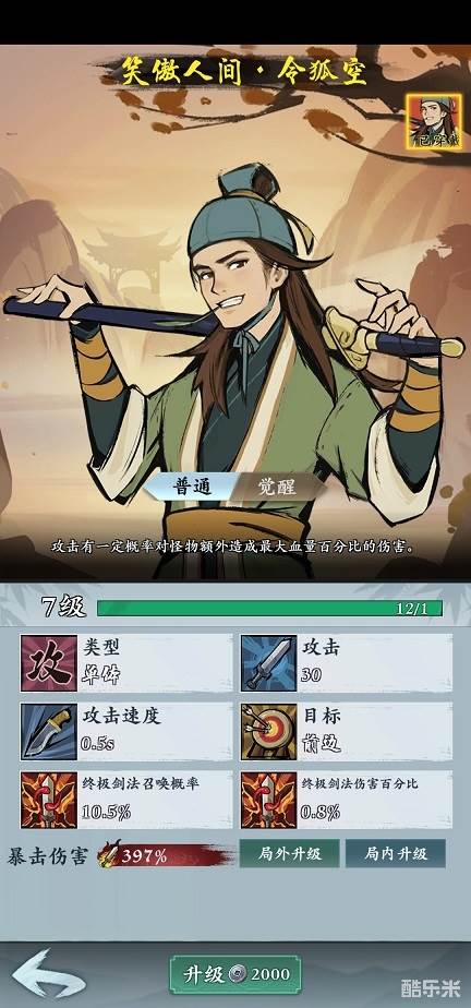 令狐空属于后期固伤流派的强力武侠英雄,单独拿出来讲,前期的令狐空相对来说是没有那么强势的,需要我们搭配一些辅助来提升令狐空的输出能力,到了后期令狐空就是恐怖如斯的存在。