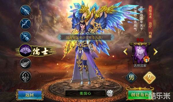 2,职业选择,游戏共6个职业:霸枪(物理近战)、狂刀(物理近战)、神剑(法术近战)、穿云(弓箭、物理远程)、儒士(扇子、法术中程)、道玄(法师、法术远程);各个职业都有自己的特色,一句话总结:混战远程沾光,单挑近战牛逼!