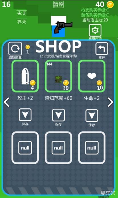 1、《特工使命》在游戏操作方面与其游戏画面一样简洁有力,玩家通过点击左右半边的屏幕达到操控人物射击以及跳跃躲避,技术含量要求不高,完全就是需要玩家注意力集中,等枪口的射线对准敌人时点击发射子弹,同时注意敌人的子弹发射CD以及子弹弹道进行躲避。这种操作模式跟IO类游戏一样简单,完全没有难度,但如果想玩的很好还是要有一定技巧的。
