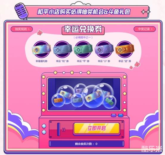 玩家们只要在和平小店完成任意物品的消费,还可以获得奖券和斗鱼福利礼包,奖券分为和平福利券、和、平、小、店五种字样,奖券会直接发放到游戏内邮箱,可以在游戏中兑换对应的奖励。斗鱼福利礼包会直接发放到斗鱼账户下,开启礼包有几率获得鱼丸、鱼翅、超级火箭、京东卡、MacBook