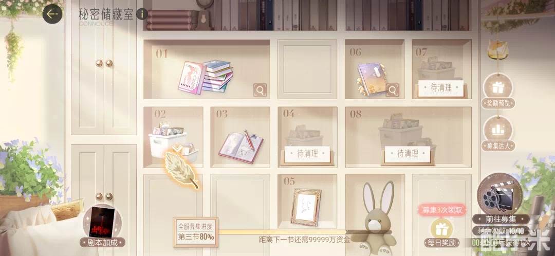 在这个充满童年回忆的时光小店中,还有一个还未装修完毕的秘密储藏室,书籍、日记、相片......有很多物品等待清理。玩家需要拍摄宣传短片来募集装修资金,等储藏室装修完毕,便可以解锁人脉圈好友与小店的温暖故事。