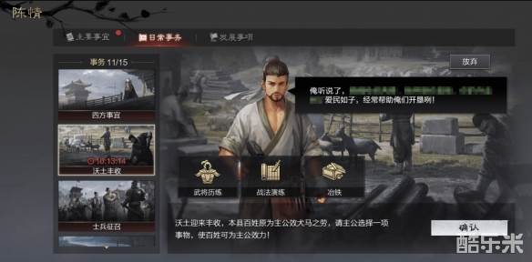《荀子》曰:“兵要在乎善附民而已”。主公开垦沃土,不仅能获得资源产量的加成,还能收获百姓的热情与支持。每当有沃土进入丰收状态,就会有百姓前来陈情,愿为主公尽绵薄之力,或是赠与主公谢礼。而主公们对沃土的贡献,也将被百姓所牢记。至于如何能够更好地让百姓为主公所用,就需要同县的主公协力合作,共同开垦良田了。