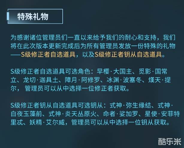 新版本S级修正者自选道具+S级修正者钥从自选道具发放