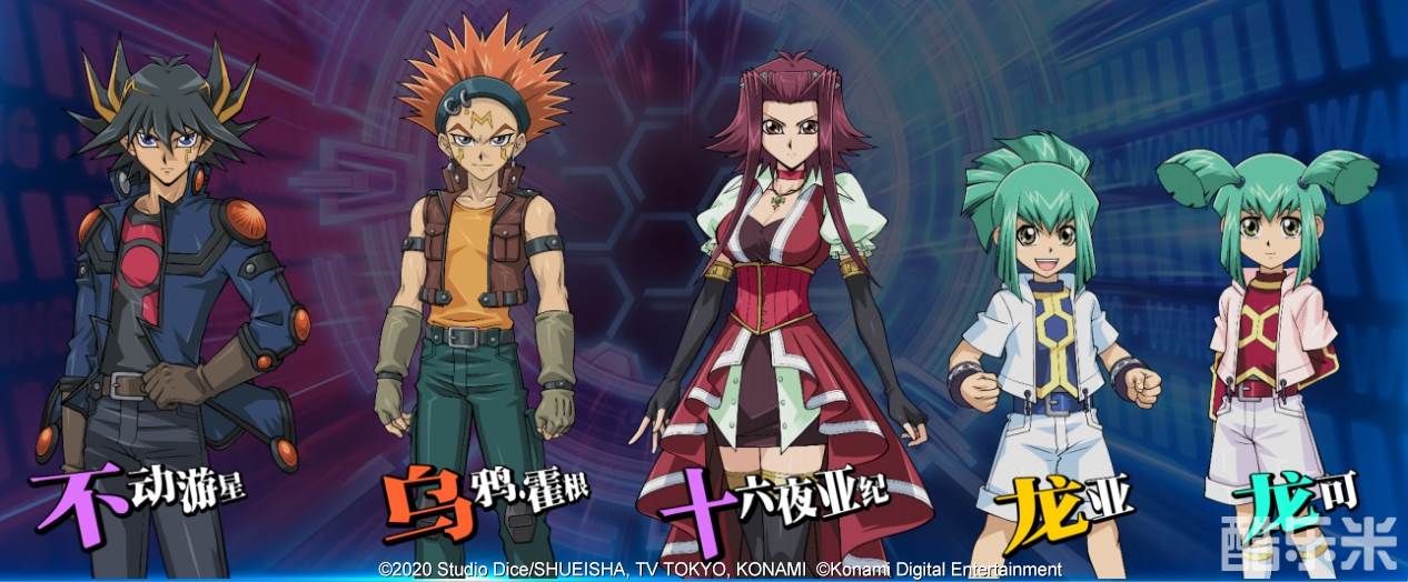本次《游戏王:决斗链接》5D’s世界首批实装的角色分别是不动游星、乌鸦·霍根、十六夜亚纪、龙亚以及龙可。他们将带着各自的王牌卡片以及专属技能在《游戏王:决斗链接》中登场。今后也将会有更多来自《游戏王5D’s》的决斗者陆续加入到《游戏王:决斗链接》,敬请期待!