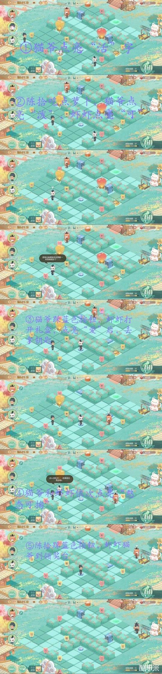 3.猫爷踩蓝色按钮,虾虾打开礼盒,点亮“爱”后,去拿钥匙