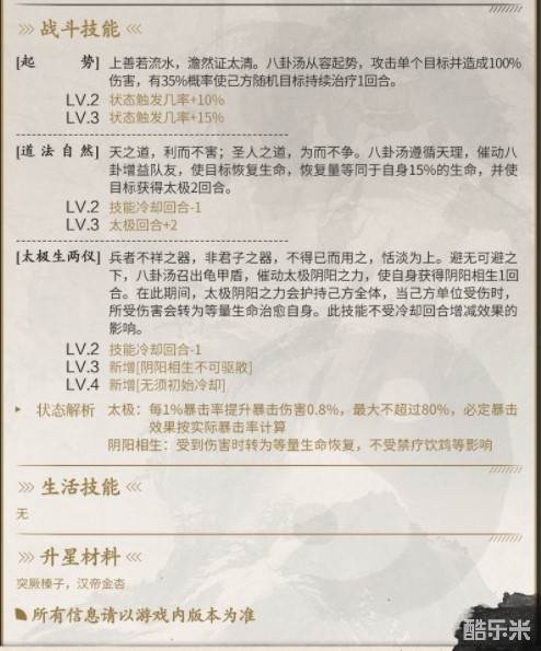 作为大师兄的八卦汤身着一裝黑白道袍,气质沉稳老成,其毛绒披肩上用水墨染出太极图案,更给他增添了几分高深玄妙。他虽模样年轻,但因说话做事不急不躁,竞意外地让人觉得可以托付。就这样,八卦汤凭借着“天下第一天师”的名头,开始了重振非我道的长路。