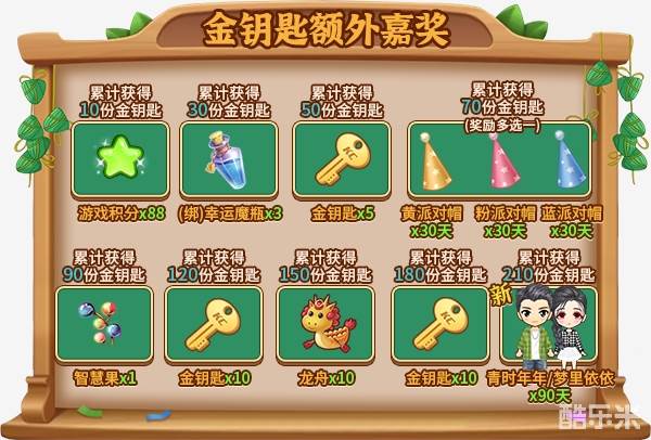 活动期间,完成游戏任务,领取“金钥匙”兑换特别好礼,还能根据您累计获得的“金钥匙数量,领取额外奖励!