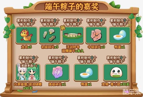每花费三种材料可制作一个“端午粽子”,根据您累积制作“端午粽子”的数量,领取额外奖励!