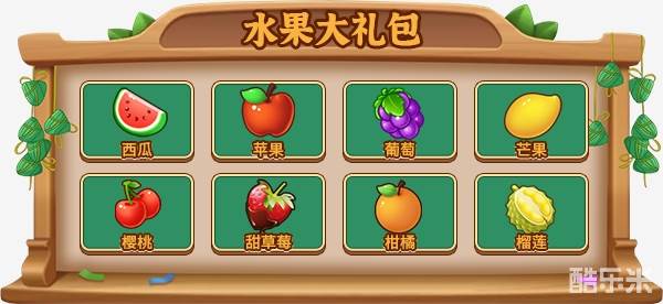 每次摇奖都会随机获得3种奖励,如果同时出现三种一样的水果,就能额外获得“水果大礼包”一份!
