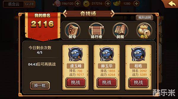 1,进入竞技场后可以选择系统分配战力相近的角色进行挑战(如果不满意可以无限刷新)。