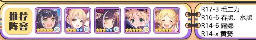 R14-6露娜。R16-6春黑,水黑。R17-3莫妮卡