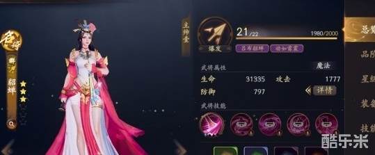 从技能介绍中可以看出,他是一位多功能的辅助型武将,其集控制,群体输出,辅助为一体,所以貂蝉无论是在pve还是pvp中都具有不俗的作用。貂蝉的1技能拥有激励效果(增加武将的攻速和攻击效果),使其搭配一个前排输出型武将(如:吕布),输出将会非常可观。有貂蝉这样一位多功能的辅助型武将在我军后排,我军前排武将将会无后顾之忧,大杀四方!