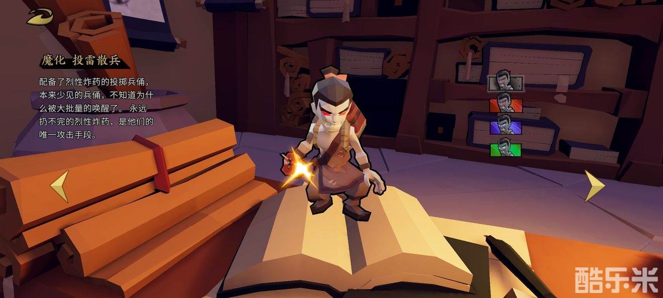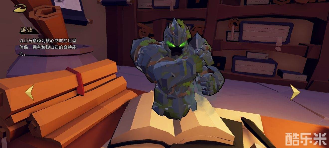 一图战神小怪,黄甲人称赵信,攻击方式为蓄力然后突刺新月横扫。在蓄力可以被鸟的飞踢 狗的手雷打断,或者用猫猫的源力球锁定将其击杀。