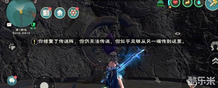 可以从主城略微破损的传送阵传送至甬道内的传送阵