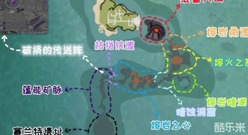 入口附近有一个熔岩龟的刷新点,可以当参照物,没有的话就按照坐标点位置寻找哦