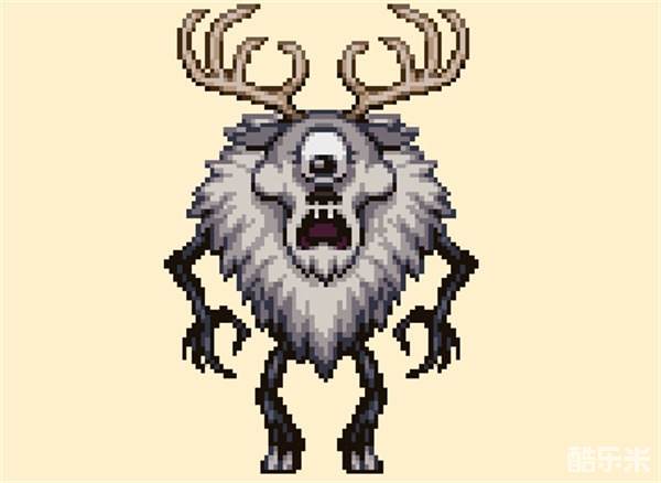 鹿角怪是泰拉瑞亚推出的饥荒联动boss,在恶魔祭坛处,用1个晶状体,5个腥红矿/腐化矿,3个小雪怪绒毛可以合成一个鹿零件。在雪地任意时间使用鹿零件可召唤。