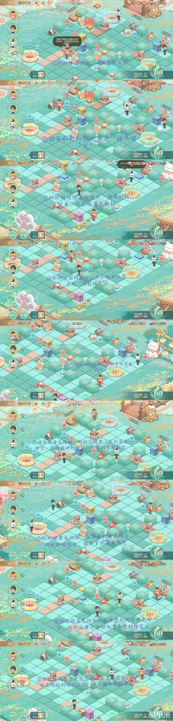 通过挑战关卡可获得「奖券」与寻钥进展,寻钥进展达到指定要求即可获得「钥匙线索」,消耗「钥匙线索」可解锁一格探索范围。参加活动可获得活动货币「奖券」,可用于活动商店兑换奖励。完成局数达到指定要求还可领取活动专属徽章「喵园游」。