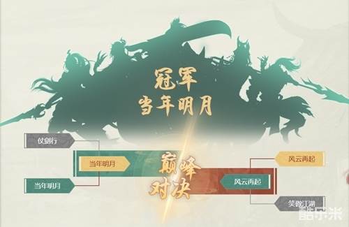 临安赛段中,【当年明月】帮会率先与大热帮会【仗剑行】对决并取胜。随后在决赛中,迎战另一支强大的帮会【风云再起】。巧合的是,【当年明月】帮会在第一轮的淘汰赛的对手帮会,也叫做【风云再起】。两者仅是区服不同,却有着相同的帮会名称。冥冥之中,像是宿命对决一般,两支帮会展开了最后的、最精彩的巅峰对决。