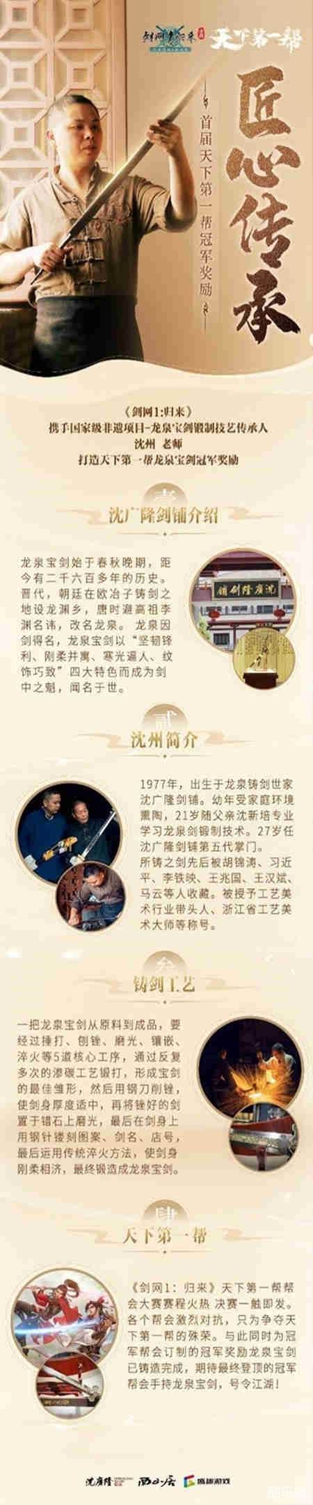 正如龙泉宝剑的技艺代代传承一般,我们也一直秉持着匠心精神,为所有热爱着《剑网1:归来》的大侠们,用心还原着大家记忆里的剑侠江湖。热血的故事永远不会落幕,“天下第一帮”的赛事也许在日后迎来第二届、第三届……还有更多大侠们怀念的玩法,活动,我们与各位大侠共同期待。