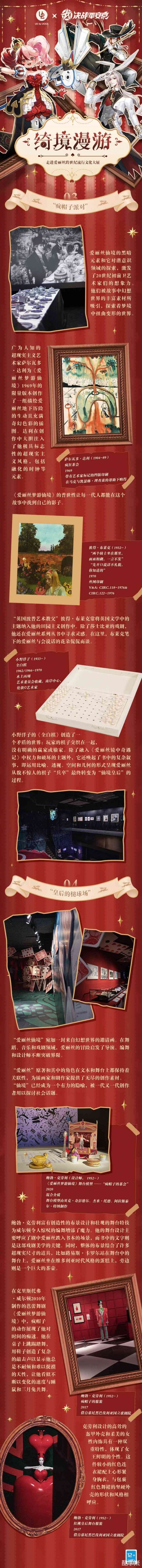 恰逢《爱丽丝梦游仙境》中文译本出版100周年,换上复古的华丽服饰,自由地穿梭在这绮境之中,金鱼姬「红心纸宴」、万年竹「风音有信」、鬼使白「幻时奇遇」,三款绮境漫游系列皮肤即将陆续登场,一起随之来深入了解爱丽丝的故事与文化吧!