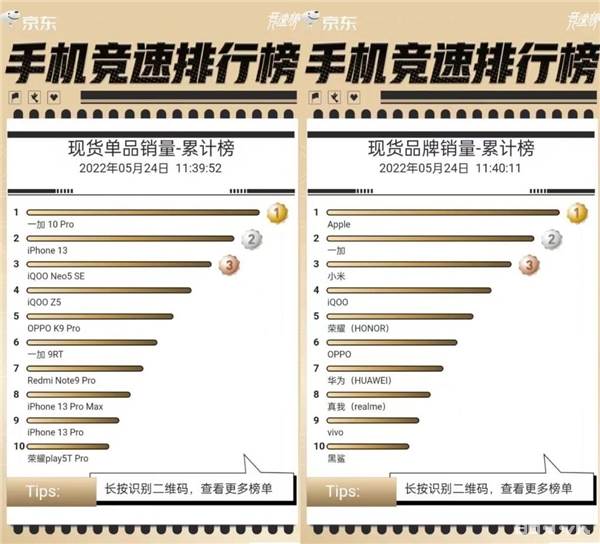 一加Ace、一加9RT和一加10 Pro发布后,便受到了广大用户的喜爱。5月23日京东618开启后,一加 10 Pro便登上了京东竞速排行榜现货单品销量累计榜第一,同时一加成为现货品牌销量累计榜安卓第一。一加 Ace、一加Ace 竞速版、一加 9RT预售期间也数次登上预售单品销量排行榜,销售火爆。