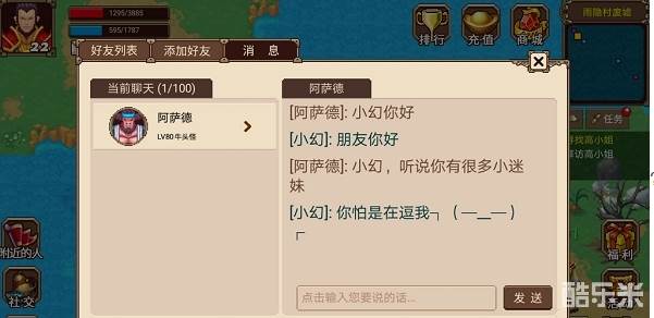 自己一个人孤单了,通过【社交】按钮,添加附近的人为好友;在这里你们可以请组队一起浪迹天涯,兴许就能成为一段佳话;当然也可以和他进行切磋提高自己;对方有什么好东西,或者想向对方表达爱意时可以交易一些物品;有什么悄悄话你们俩也可以私聊。当自己牛逼哄哄要创建帮派时,别忘记邀请好友加入,一起为创建奇缘第一大帮而奋斗。