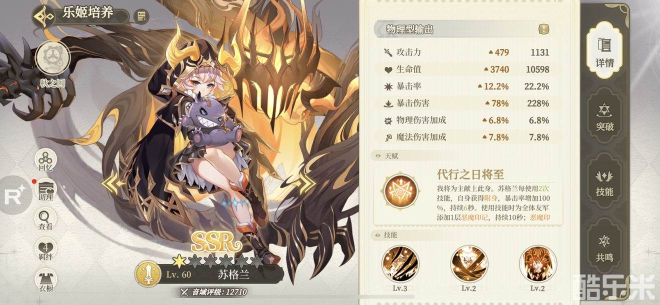 因为我的苏格兰没有四星共鸣,本人也比较懒的无限重开,所以堆了暴击(防止抬杠),带了暴击猫,面板如下