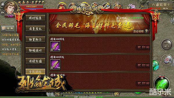 大家注意羽毛活动也是分很多种的。这种使用羽毛送羽毛的全民活动,就非常好。还有一种也不错,看大家对翅膀升级的兴趣大小了!(充值有分寸,游戏有乐趣~)