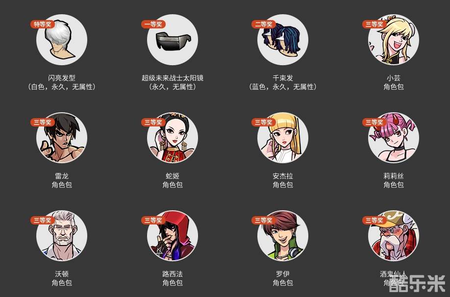 当然还有其他各种稀有大奖以及超特角色包,包括永久白色闪亮发型,未来战士太阳镜等,千万不要错过!
