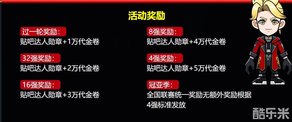 关注并认证百度贴吧社区账号,代表贴吧出战根据全国联赛的最终成绩可以额外获得贴吧的勇士奖励。
