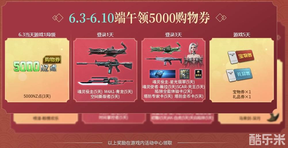6月3日端午节当天,游戏一局即可直接领取5000NZ点购物券(3天)。