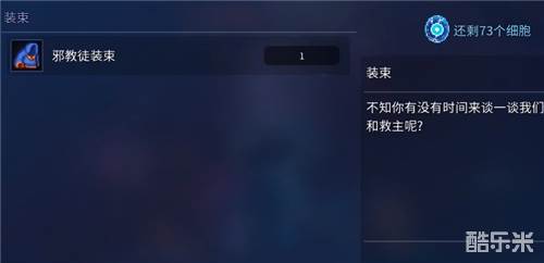 接着我们就需要回去,找收藏家解锁这个邪教徒装束,1细胞就可以解锁,完成以后,重新开始就可以穿上了。