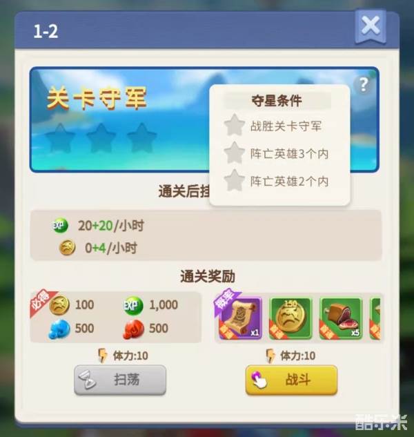 冒险挑战每一层都包含多轮挑战,成功战胜一轮怪物后,存活英雄保留当前的生命值和怒气进入下一轮,直至战胜最后一轮怪物,根据存活英雄数量等因素评定星级。