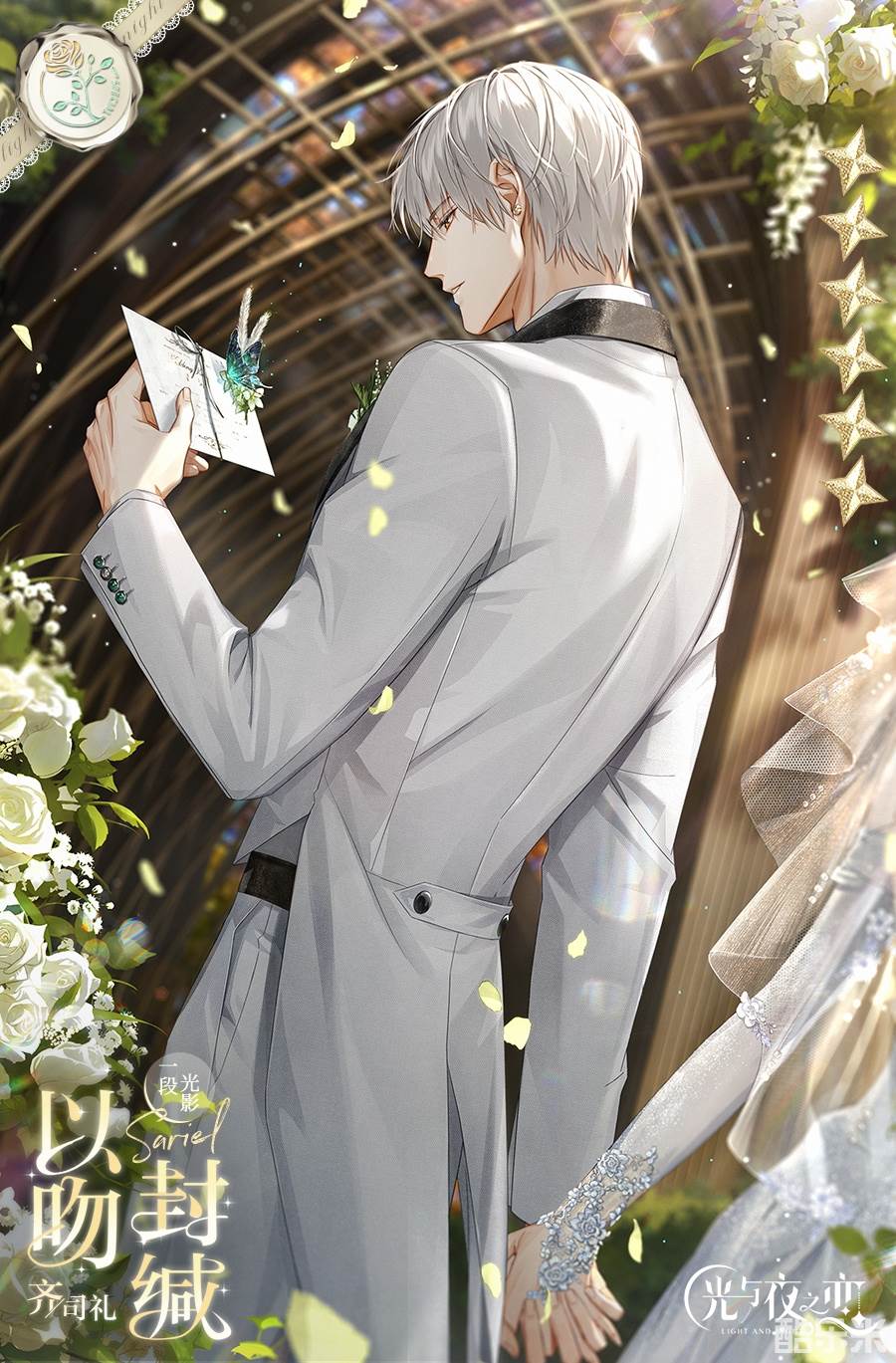 [6星]灵犀 齐司礼・以吻封缄 属于【纪念灵犀・瑰意】系列,二段光影为特别纪念横版卡面,在游戏内灵犀详情界面点击左上角放大镜【查看大图】即可鉴赏完整卡面。