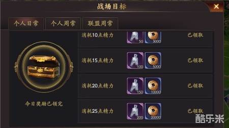 攻城略地:每天都要打,每天精力可以拉满花费300元宝,联盟币的重要来源也是在攻城略地中获取至于联盟币的重要性后面会讲到的,根据战场目标把秘宝全部完成一个好的联盟可以一个星期攻城略地可以搞到3000+的元宝。