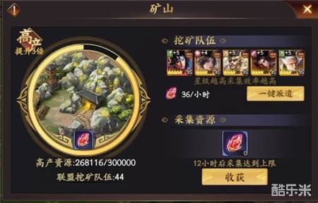 在来说说矿山采集有个优先前期推荐精练石把自己高星的武将队伍放在这里,其次就是祈福币最后在是铜币,攻城略地怎么通关怎么玩就不多做叙述了