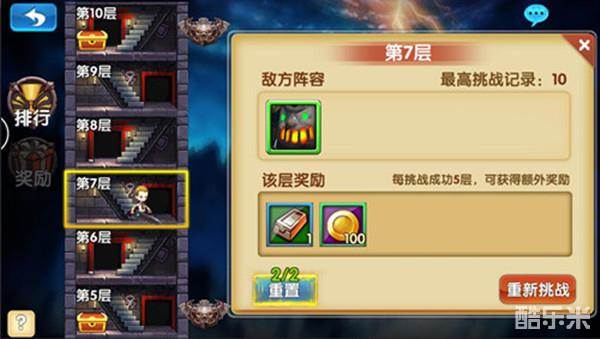 进入试练塔之后,每层通关都会固定获得奖励,没5层可以获得额外的神秘宝箱,成功挑战后获得奖励。从第一层开始,通关当前层数才能进入下一层。每天可以免费重置一次,也可以购买次数继续重置。为了减轻大家的负担,您可以在首次通关后使用扫荡获得奖励哟!