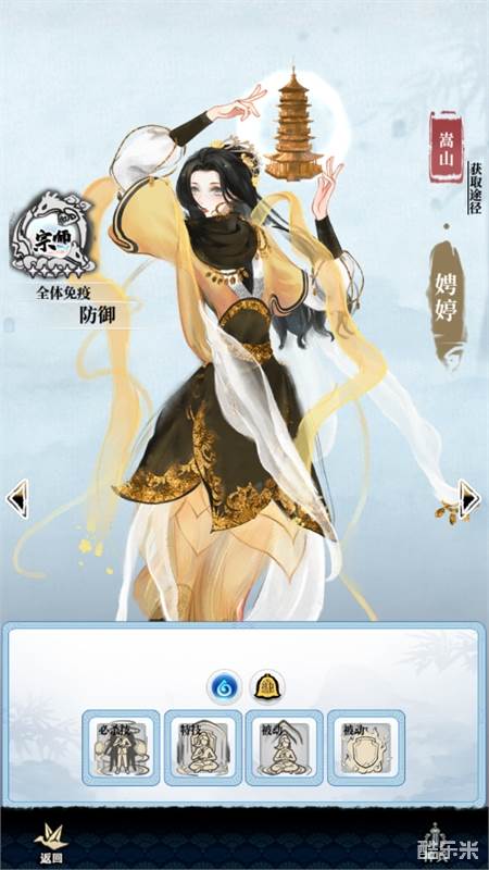 娉婷是一个辅助型防御职业武娘,必杀·宝塔庇佑免疫2次技能伤害,技能和少林的不杀技能雷同。